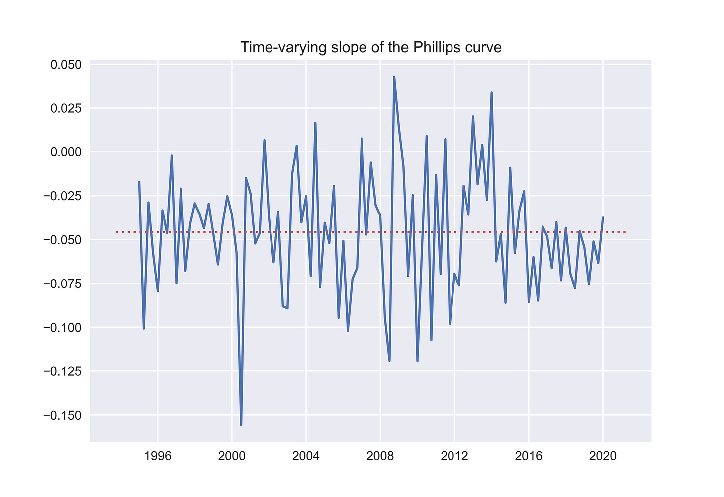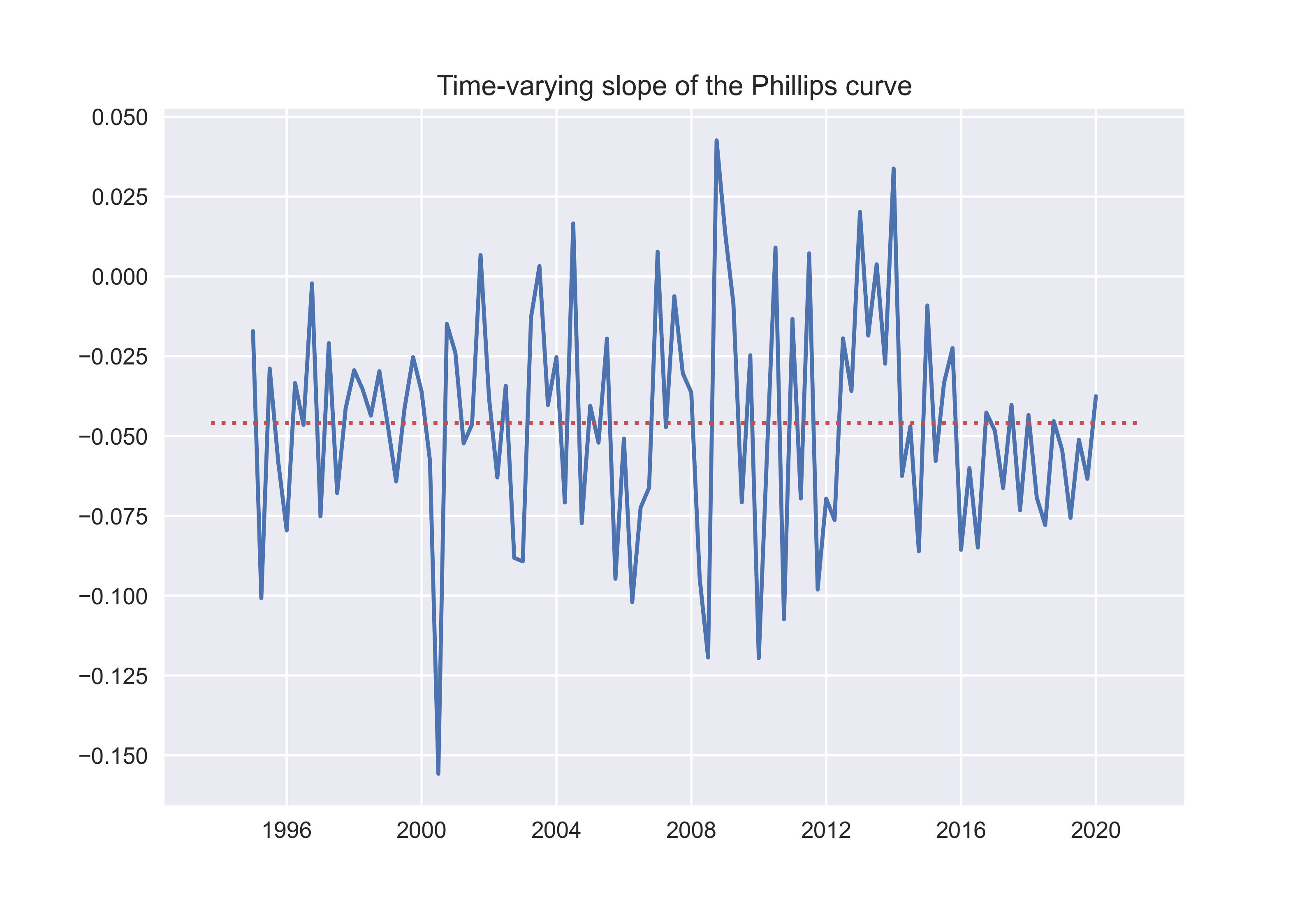 And the next figure displays the time-varying slope of the Phillips curve.