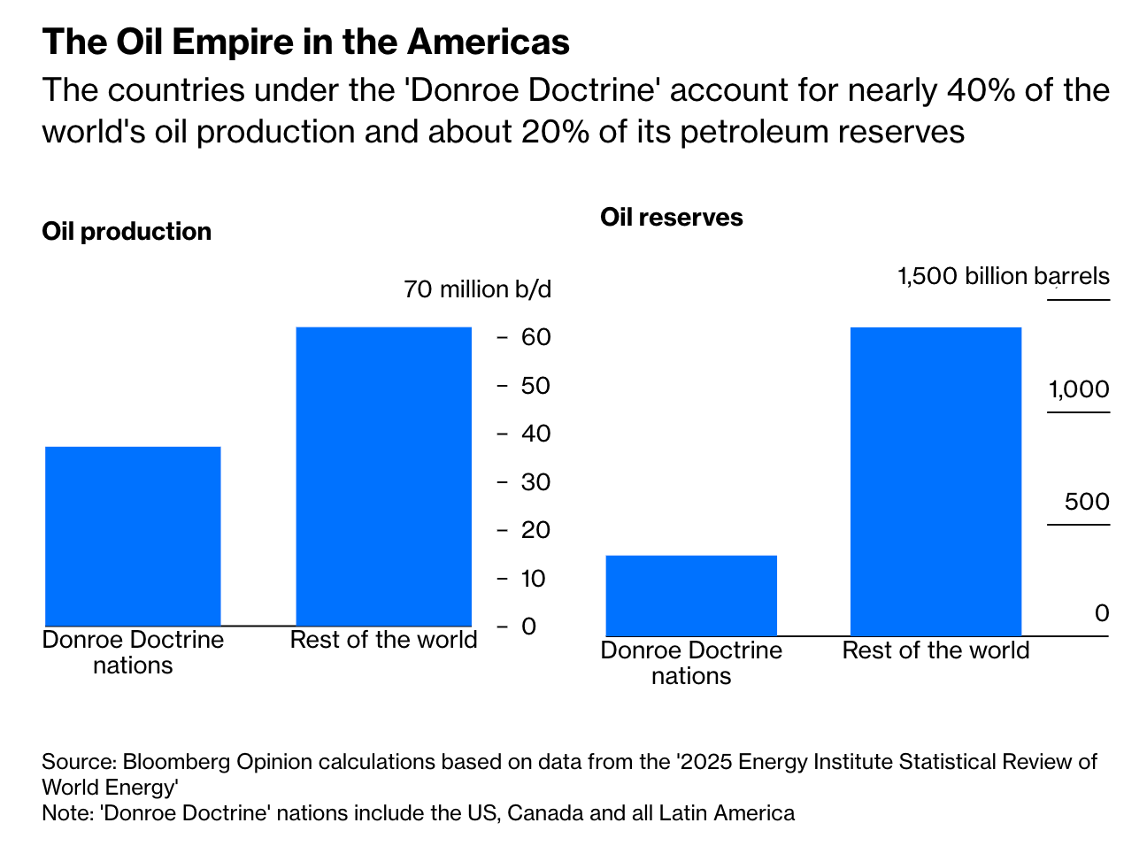 The second was the little debate that unfolded over Venezuelan oil. Javier Blas laid out the oil primacy view. “Today the White House has primacy over oil-producing allies and adversaries alike — whether it’s Saudi Arabia or Iran, Nigeria or Russia. … The country’s oil is now part of a petroleum empire stretching from Alaska to Patagonia — all under Washington’s tutelage.”