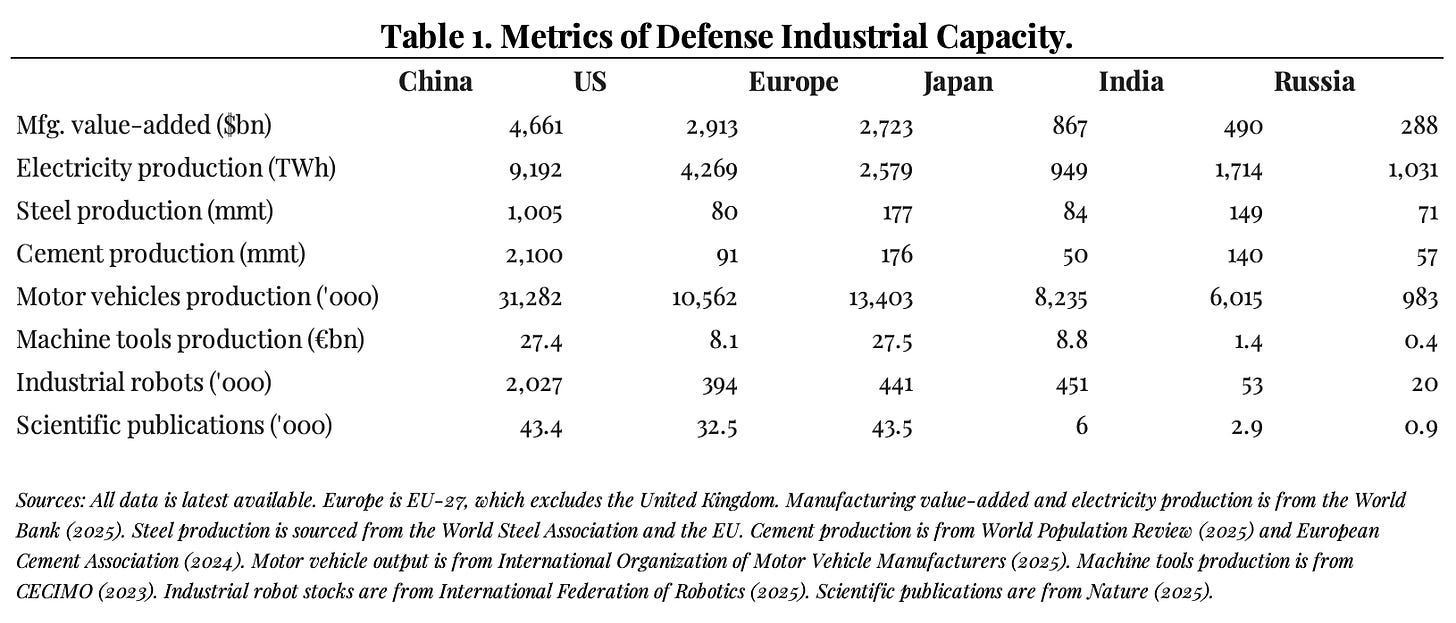 Looming over everything is the sheer scale of China’s defense-industrial potential. China’s manufacturing value-added is 1.6X America’s, electricity output is 2.2X, steel production 12.6X, motor vehicles output 3.0X, machine tools 3.4X, industrial robot inventory 5.1X, scientific output 1.3X. It is really hard to see how the US can avoid outright defeat in any sustained military struggle anywhere within China’s orbit.